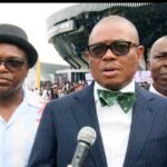 PHOTO CAPTION: Arsenal’s Jurrien Timber (centre) heads home to open the scoring vs Leeds.