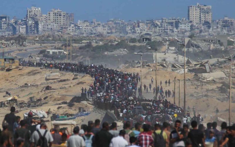*PHOTO CAPTION: Palestinians heading north to enable the Israeli military adjust to new deployment lines in consonance with the ceasefire agreement terms.