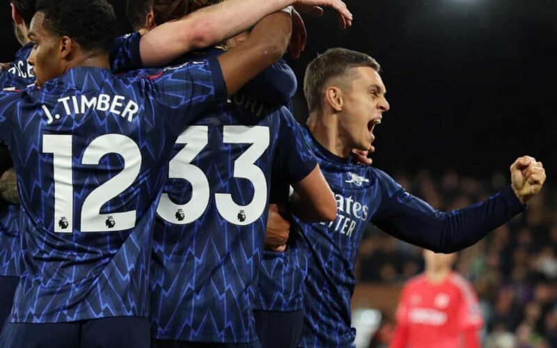 *PHOTO CAPTION: Arsenal players rejoicing after Trossard’s goal.