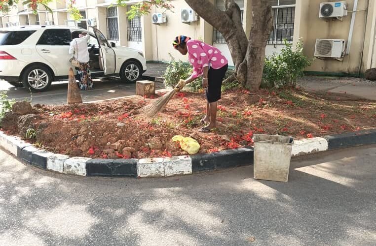 *PHOTO CAPTION: One of the cleaners at work at a wing of FCTA secretariat.