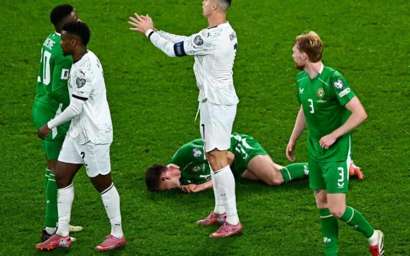 Cristiano Ronaldo was sent off on Thursday, 13 November, as Troy Parrott fired the Republic of Ireland to a sensational 2-0 victory against Portugal to set up a qualifying showdown with Hungary.