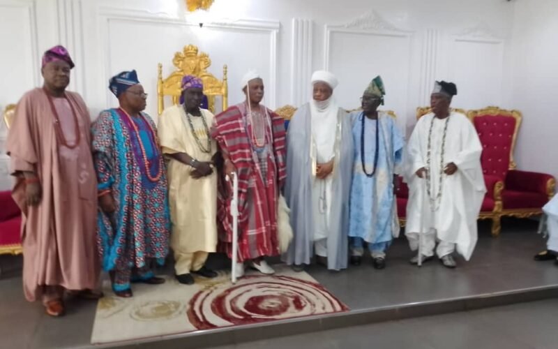 *PHOTO CAPTION: Sultan Abubakar (3rd right), Oba Ladoja (c) and others after the visit.