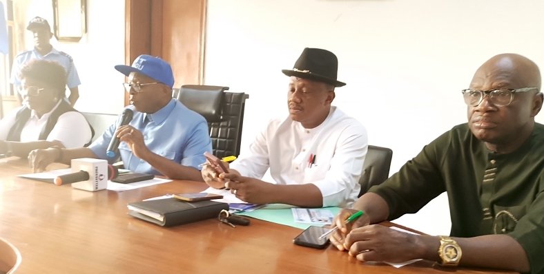 *PHOTO CAPTION: Professor Ogbodo (2nd left) addressing the media while other senior staff members watch.