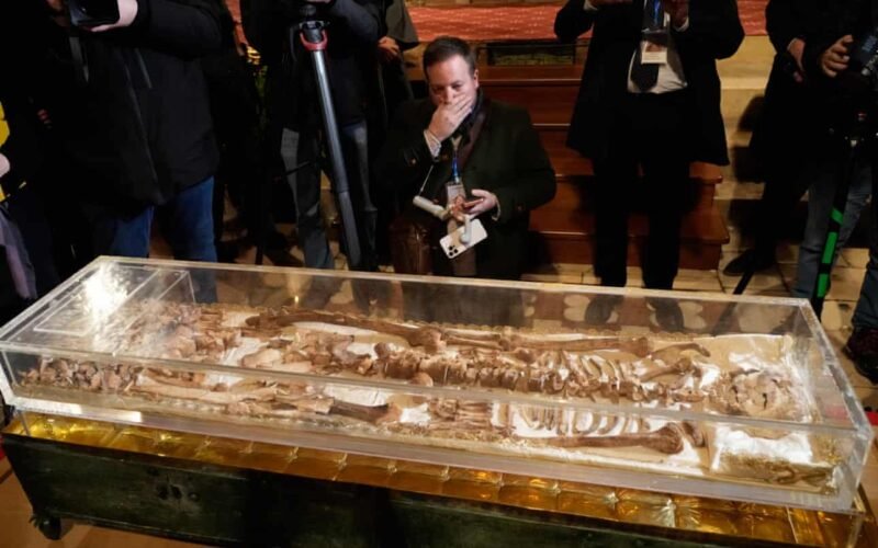 His remains, which will be on display until 22 March, were transferred to the basilica built in the saint’s honour in 1230. But it was only in 1818, after excavations carried out in utmost secrecy, that his tomb was rediscovered.