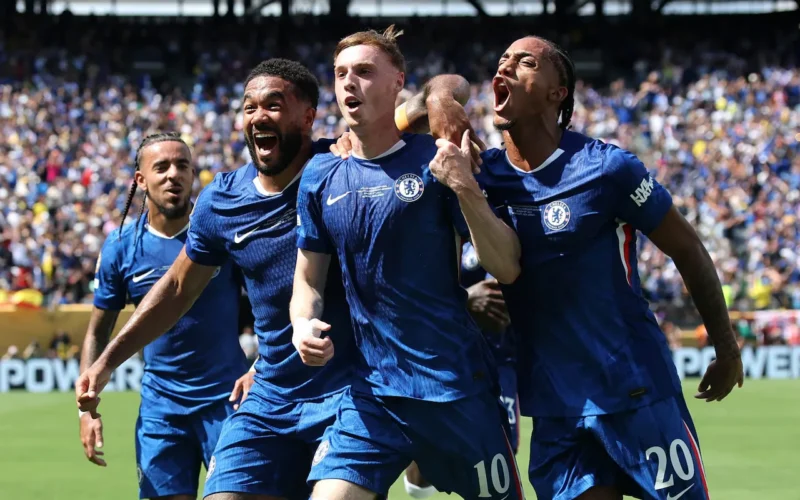 *PHOTO CAPTION: Chelsea players celebrate after scoring yet another goal in a match.