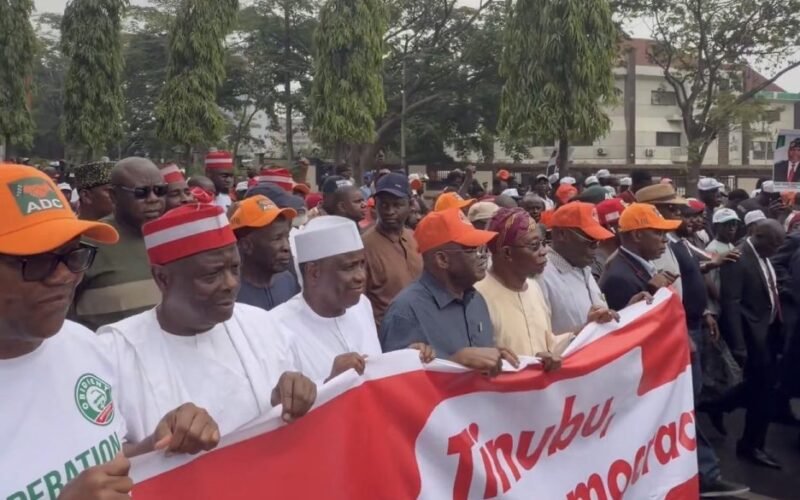Obi wrote on X: “Today, I joined fellow Nigerians, leaders, and members of the African Democratic Congress (ADC) led by National Chairman Sen. David Mark to participate in a peaceful “Save Democracy” protest.