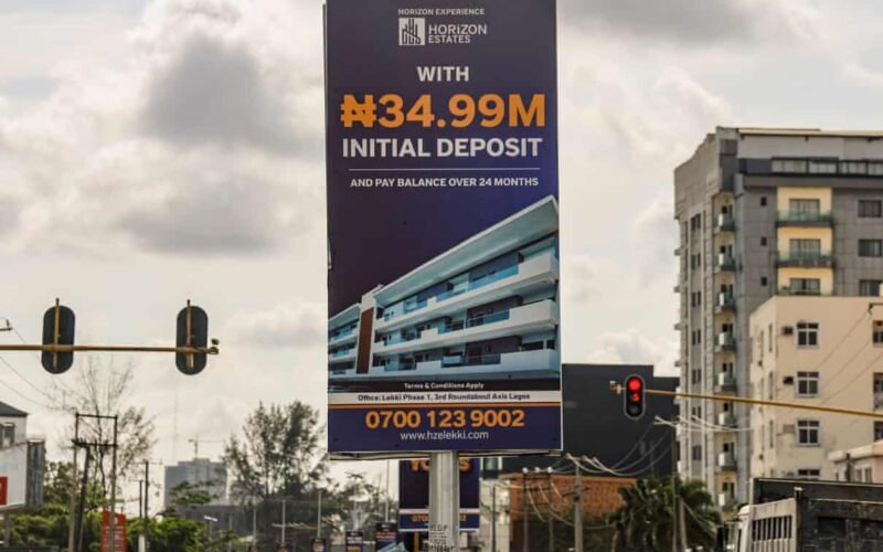 *PHOTO CAPTION: A sign in Lagos advertises property with a price tag well beyond the reach of most people working in the city.